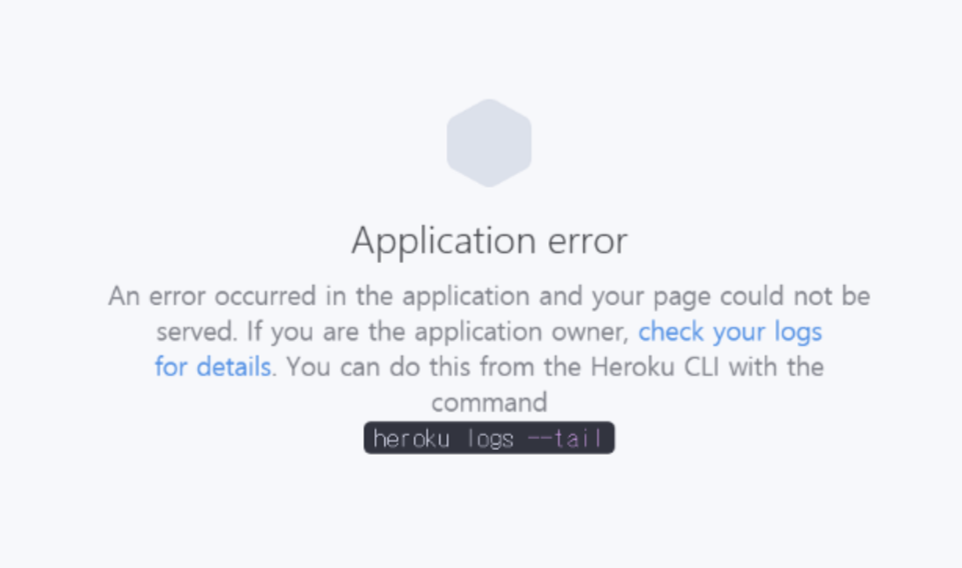 아참, 헤로쿠는 H로 시작하는 에러 코드를 제공하고 있다. 만약에 배포하는 과정에서 문제가 발생한다면 해당 url으로 들어갔을 때 다음과 비슷한 화면을 마주칠 것이다. heroku logs --tail 으로 로그를 뜯어 보면 에러 코드를 발견할 수 있다. 에러 코드에 대한 설명은 여기를 참고해라. 에러 코드별로 에러를 살펴볼 수 있다. 헤로쿠 배포에 있어 처음 오류를 발견하면 너무나도 막막할 것이다. Error Code를 잘 참고해서 검색하면 좋은 결과를 가질 수 있을 것이다.